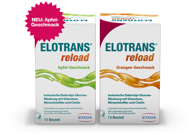 ELOTRANS® reload enthält eine isotonische Elektrolyt-Glucose-Mischung mit Vitaminen, Mineralstoffen und Cholin.