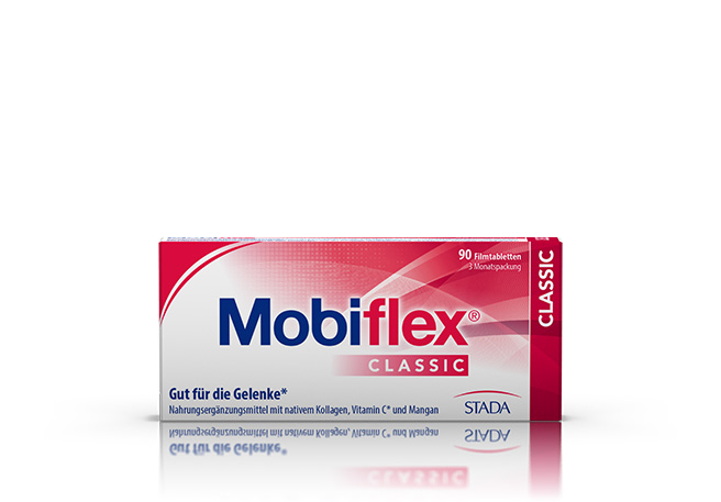 Um Knorpel und Bindegewebe Ihrer Gelenke mit genügend Nährstoffen zu versorgen, Ihre Venen zu unterstützen und die Rückbildung von Blutergüssen zu fördern, bietet STADA mit Mobiflex® und Hirudoid® FORTE-Präparate, die helfen, wieder beweglicher und fitter zu werden.