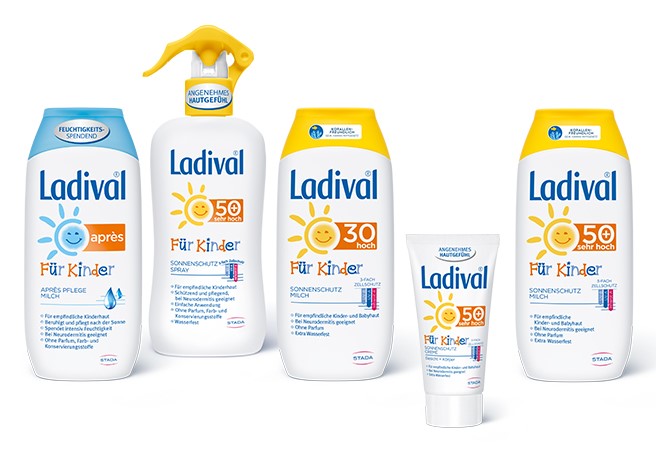 Wohltuende Sonne hat auch ihre Schattenseiten. Intensive UV-Strahlung schädigt die Haut und kann im schlimmsten Fall zu Krebs führen. Ladival® von STADA schützt mit einem einzigartigem Infrarot-A-Schutzkomplex sowie UV-A- und UV-B-Filtern und wirkt damit dreifach: gegen Sonnenbrand, Zellschäden und Hautalterung. Ob allergische, empfindliche, trockene Haut oder Kinderhaut – Ladival® hat für jeden Hauttyp das richtige Produkt und ist exklusiv in Apotheken erhältlich.